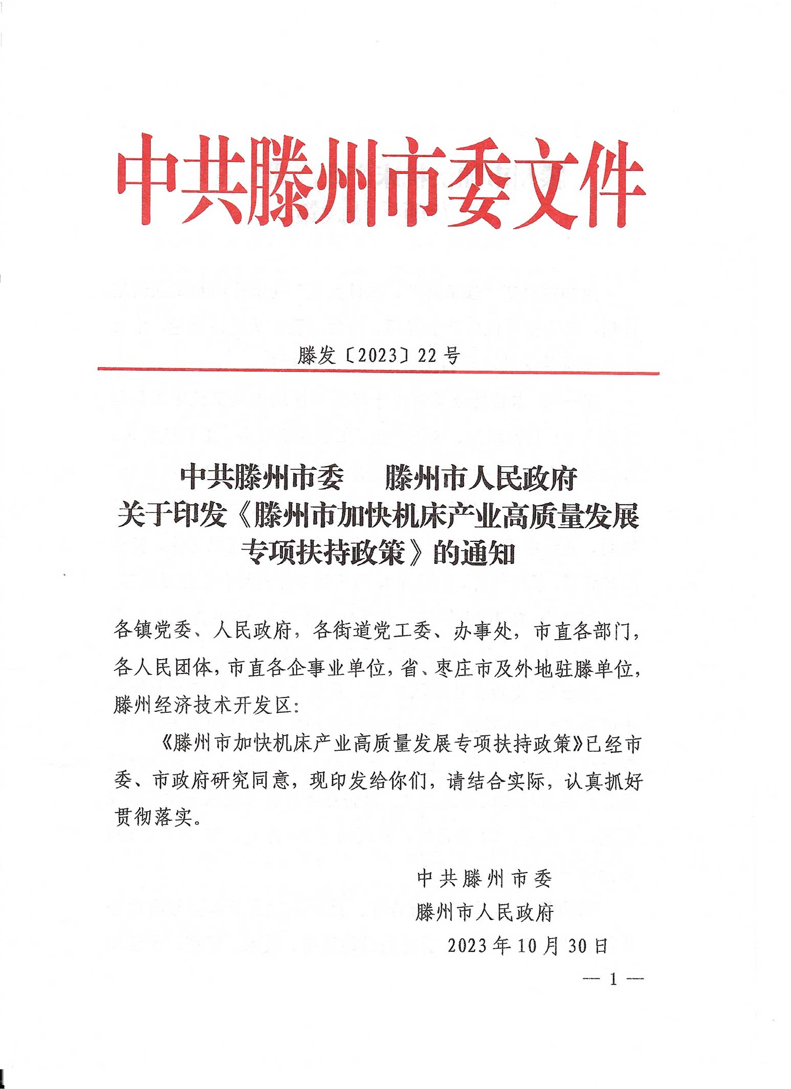 中共滕州市委 滕州市人民政府关于印发《滕州市加快机床产业高质量发展专项扶持政策》的通知